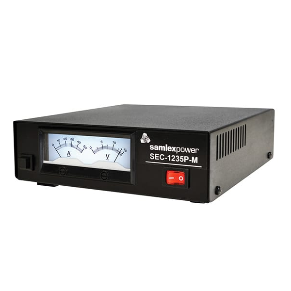 Las nuevas fuentes de alimentación de escritorio SEC-1235P-M, tecnológicamente avanzadas, son más ligeras, silenciosas, con corrección del factor de potencia y una entrada de CA universal de 100 a 240 voltios, 50/60 Hz. Estas fuentes de alimentación premium y de alta eficiencia cuentan con certificación de seguridad UL y CE según la nueva norma de seguridad IEC 62368-1 para su uso en todo el mundo. Estas avanzadas fuentes de alimentación de CC conmutadas incorporan medidores analógicos duales retroiluminados de nuevo diseño y están diseñadas específicamente para su uso con radios móviles terrestres. Estas fuentes de alimentación producen energía limpia y fiable, y sus innovadores circuitos minimizan la ondulación de la tensión de salida y la interferencia de radiofrecuencia (RFI). La fuente de alimentación CA-CC cumple con la norma FCC Parte 15(B), dispositivo digital de clase B y Nivel de Eficiencia VI.